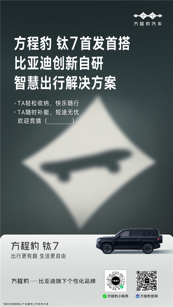 比亚迪自研滑板车来了 方程豹钛7首发首搭
