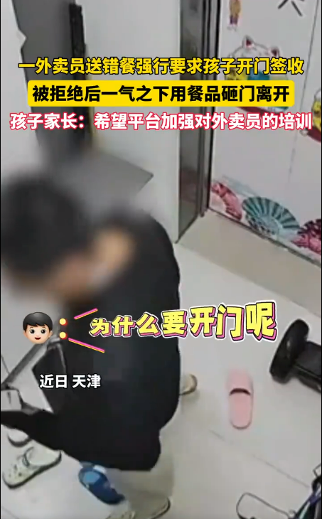 外卖员送错餐强行要求孩子开门签收 被拒绝后用餐品砸门离开 家长:平台已致歉