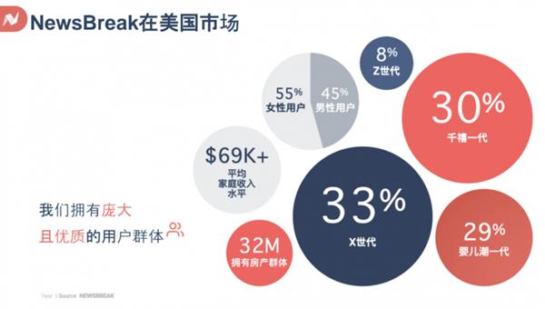 目前,NewsBreak 已整合 2000 余家全美顶级出版商资源,服务覆盖全美两万余个城市,用户群体中 60% 以上为 27-58 岁的主流消费人群,其中女性用户占比达 55%,这一高净值、高消费潜力的用户画像,为品牌广告主提供了精准触达目标客群的优质土壤。