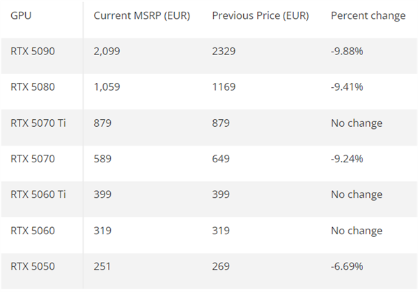 接近10%!NVIDIA RTX 50显卡欧洲降价