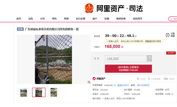 而近日,中山市第二人民法院在阿里拍卖上又公开拍卖一批鳄鱼,拍卖价16.8万元。