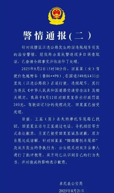 8月21日消息,今日,甘肃卓尼县公安局再次针对同一起交通事件发布警情通报。