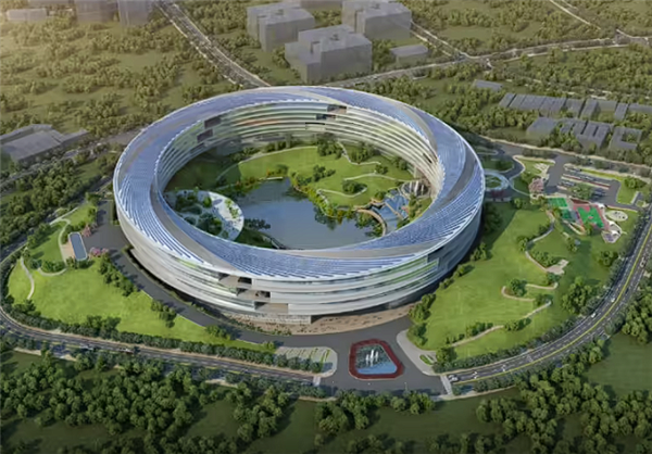 由六栋环形布局的单体建筑组成,契合赛力斯集团Logo,外径约272米,内径约208米。
